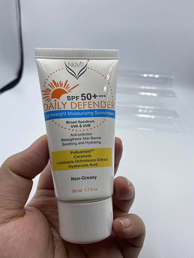REVIEW | Nuvit Daily Defender Lightweight Moisturizing Sunscreen – A Catch! Author: Rinn Asri Source: https://blog.hermo.my/2020/10/18/review-nuvit-daily-defender-lightweight-moisturizing-sunscreen-a-catch/ Have you heard of this brand Nuvit? It is a growing brand with a varied skincare line that is getting more and more established. They are committed in pursuing “Authentic Beauty”, emphasizing on professionalism, reliability, sincerity and purity as their brand mission. Nuvit believes that only the cleanest and purest elements can nurture the finest skin, unleashing the confidence and inner glow within. I have tried their Moistloc Range (so impressed! Especially the Hydrating Toner) and now their sunscreen, Daily Defender Lightweight Moisturizing Sunscreen SPF50+ Ingredients Water, Propanediol, Cyclopentasiloxane, Isononyl Isononanoate, Titanium Dioxide,Caprylyl Methicone, Ethylhexyl Methoxycinnamate, Polyacrylate-13, Butyl Methoxydibenzoylmethane, Butylene Glycol, Benzophenone-3, Polysorbate 60, Phenoxyethanol, Silica, Polyisobutene, Caprylyl Glycol, Cetyl Phosphate, Phospholipids, Ethylhexylglycerin, o-Cymen-5-ol, Caprylic/Capric Triglyceride, Polysorbate 20, Arginine, Sorbitan Isostearate, Acrylates/C10-30 Alkyl Acrylate Crosspolymer, Sodium Hyaluronate, Diisopropyl Adipate, Sodium Lauroyl Lactylate, Lecithin, Acrylic Acid/Acrylamidomethyl Propane Sulfonic Acid Copolymer, Dimethylmethoxy Chromanol, Laminaria Ochroleuca Extract, Glyceryl Caprylate, Theobroma Cacao (Cocoa) Seed Extract, Xanthan Gum, Ceramide NP, Phytosphingosine, Ceramide AP, Cholesterol, Carbomer, Ceramide EOP It is free from bad alcohol, fragrance, and essential oils if any of these is a concern to you. This is a hybrid sunscreen as it uses both physical (titanium dioxide) & chemical sun protection agents (Ethylhexyl Methoxycinnamate, Butyl Methoxydibenzoylmethane, & Benzophenone-3). Nuvit calls this Photo-Shield technology which protects the skin from both UVA and UVB rays that are super harmful and can cause us photoaging, malignant melanoma, sunburn, and many more. This also contains great humectants (moisturizer ingredient that helps your skin to cling onto water and hold onto it so that your skin feels nicely moisturized, according to incidecoder) such as propanediol & sodium hyaluronate, along with a handful of emollients (ingredients that make your skin soft, smooth and lovely, also according to incidecoder) which are Cyclopentasiloxane, Isononyl Isononanoate, Caprylyl Methicone, Caprylyl Glycol, Phospholipids, Caprylic/Capric Triglyceride, Diisopropyl Adipate, Lecithin, Glyceryl Caprylate, and Cholesterol. Texture and Smell This hybrid sunscreen has this typical sunscreen smell but it is nothing overpowering. The texture is really lightweight and spreads nicely and blends well into the skin. To be honest the texture really exceeded my expectation because it feels wonderful and so moisturising. The formula doesn’t feel heavy at all and I can feel it settling into my skin nicely. It also does not leave any sticky or greasy feeling and no white cast on my skin. How to Use: Application and Reapplication This goes last in your morning skincare step: water-based/first cleanser – toner – essence – serum – moisturiser or day cream – Nuvit Daily Defender Lightweight Moisturizing Sunscreen. Dermatologists and aestheticians suggest us to apply sunscreen in the amount of at least two fingers like this: And please please do not forget to reapply every two to three hours. How to reapply this sunscreen, you may ask. Well honestly for me, my skin can get really oily on the nose and forehead so I prefer to use a sunscreen spray for reapplication purpose. I rarely slather any sunscreen liquid or cream or gel or stick on my face to reapply, be it with or without makeup on top. If you are wearing makeup and would love to reapply using this Nuvit Daily Defender Lightweight Moisturizing Sunscreen, I would suggest you to at least remove the makeup using a micellar water or a makeup remover wipe if you find cleansing oil to be messy for at-the-office or outdoor reapplication. If you are not wearing makeup, please try and see whether this sunscreen clogs your pores and causes breakout. If it doesn’t, then you can just put this on without worries. Experience As I use a lot of sunscreen I love to know that this one is free from bad alcohol that can be drying, and I find essential oils and fragrance unnecessary so I prefer my sunscreen without them. This sunscreen feels so comfortable on my combination skin, it feels moisturising but not heavily so my skin is not suffocated or clammy especially if I have applied thicker moisturiser beforehand. I just love how it feels light but moisturising. I experienced no pilling, no breakout, no itchiness, no irritation or redness or anything. This goes with all of my moisturisers and it performs well both on its own and under makeup. This makes a great prep for makeup application especially if you are going for a matte look because this will moisturise your skin but not too much, just enough so that the matte foundation or powder will not cling on to your flaky or dry patch. But I for more assurance I would prefer to use primer always. This is just for daily light makeup look, perhaps? For when you don’t want to spend too much time getting ready. This also feels comfy both indoor & outdoor, both under the sun & in an air-conditioned room. It does not sting my eyes when I get sweaty, and to be frank this sunscreen really wows me. I feel like Nuvit knows how hot and humid the weather in Malaysia is and tries to make it work for that condition while at the same time giving the best sun protection and keeping skin healthy. I tried to nitpick for any weakness but couldn’t find any. What more with the affordable price tag. Really good, this one! My rate: 5/5 Would definitely repurchase! Category: UV ProtectionOctober 18, 2020 Share this post Share on FacebookShare on Facebook Sha